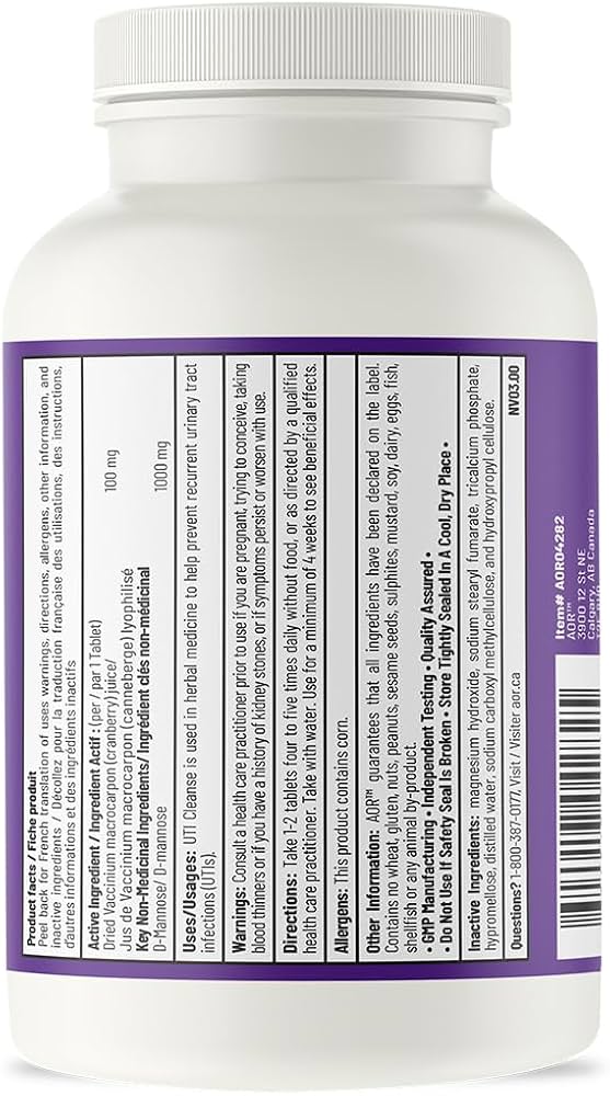 AOR’s UTI Cleanse, provides a small amount of cranberry with a large dose of D-mannose in both tablet and powder form for your convenience for short-term and preventative dosing.
